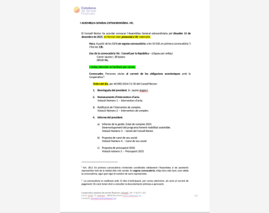Assemblea General extraordinària de socis i sòcies del 13 de desembre de 2025